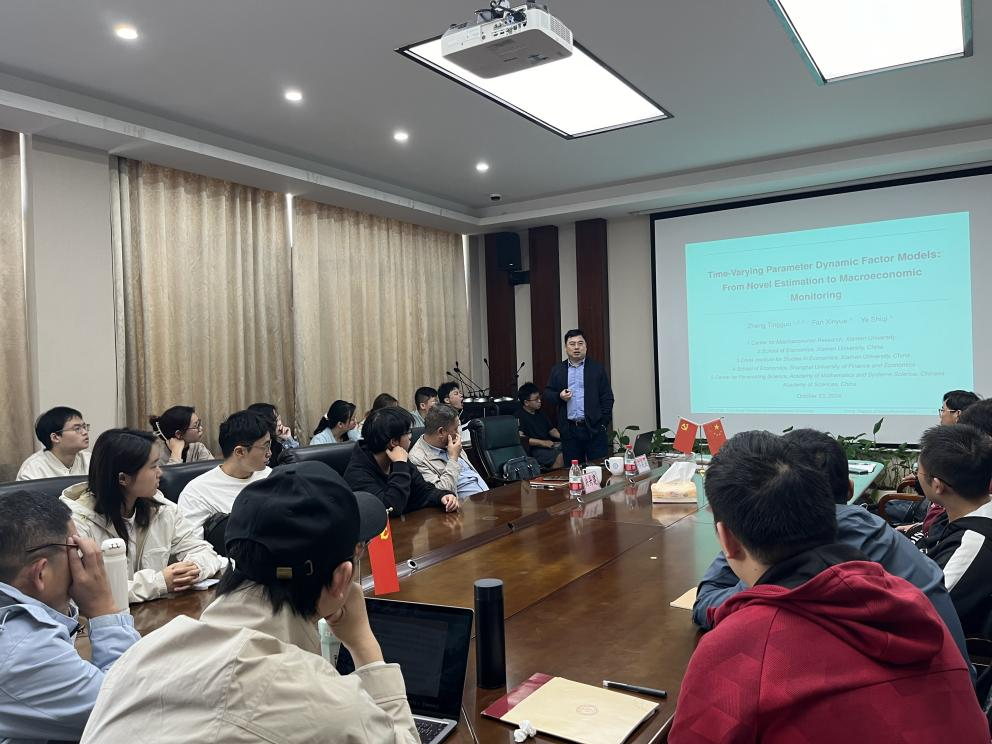 10月23日,beat365举行数海领航大讲堂2024年第14期。本期邀请厦门大学郑挺国教授为全院师生带来一场题为“Time Varying Parameter Dynamic Factor Models:From Novel Estimation to Macroeconomic Monitoring”的学术讲座。讲座由院长洪兴建教授主持,部分教师及研究生参加了此次讲座。