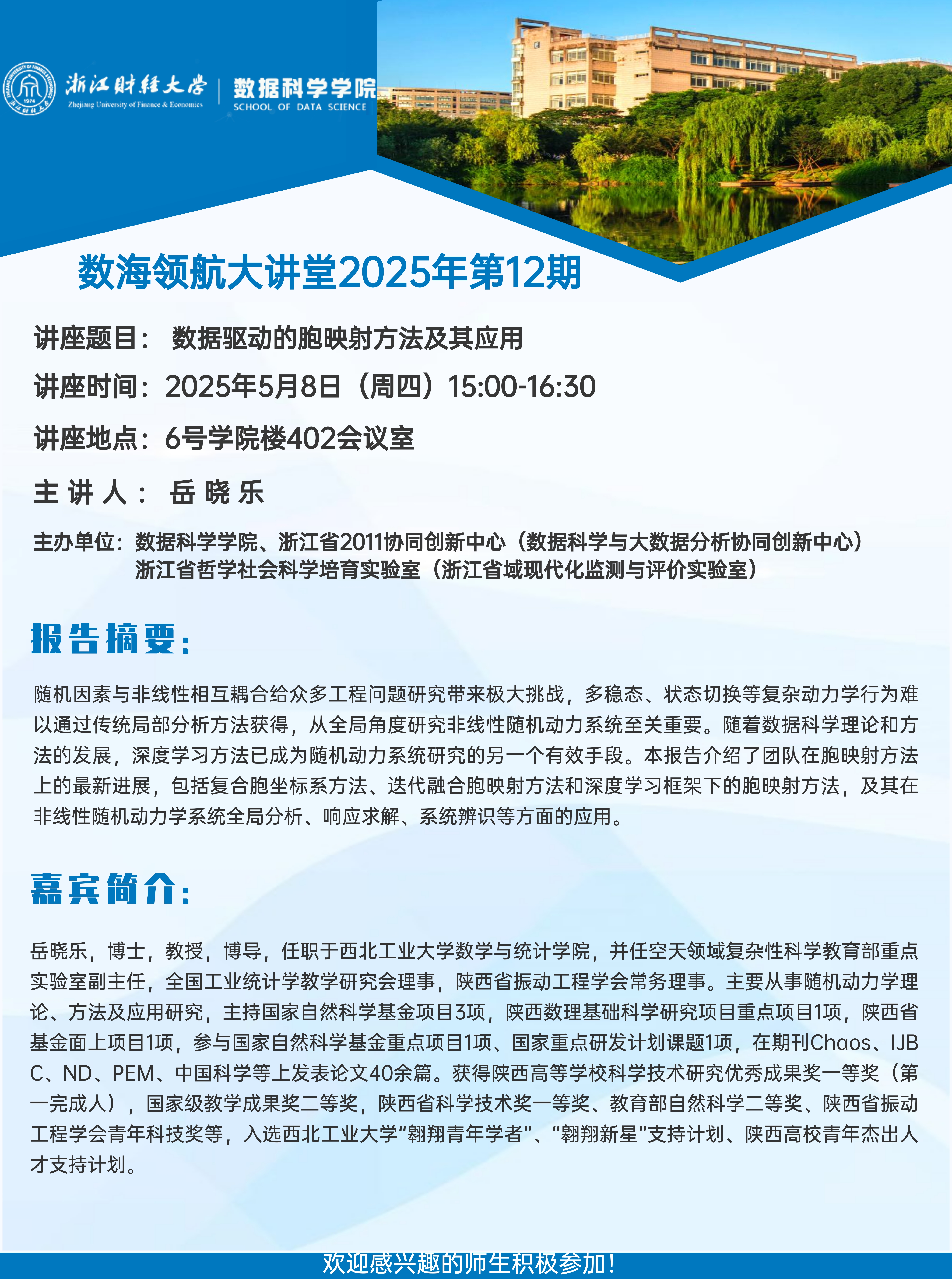 上一条:数海领航大讲堂2025年第13期——宁波大学何洪津教授 下一条:数字平台促进产业链短链化的效应测度——数海领航大讲堂2025年第11期开讲