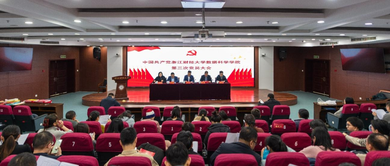 大会在庄严的国歌声中拉开序幕,学院院长、党委副书记洪兴建致开幕词。随后,校党委副书记程爽致辞,他充分肯定了过去五年中,我院党委在人才培养、学科建设、社会服务、和谐学院建设等方面取得的成绩。他指出,统计与大数据是数字时代学科融合发展创新的重要基础,要在“新财经战略”框架下更好发挥我院的专业优势。程爽对我院党组织建设提出四点要求:第一,坚持党的领导,始终把政治建设摆在首位;第二,全面深化改革,努力破解发展中的生存之道;第三,推进三风建设,激发学院发展内生动力;第四,发挥关键少数作用,着力加强领导班子建设。