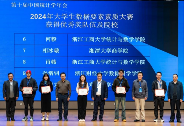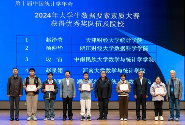 大会还举办了“2024年大学生数据要素素质大赛”的颁奖仪式。院长洪兴建教授为获奖队伍颁奖,我院杨仲华、孙熠钊作为学生代表到场领奖。