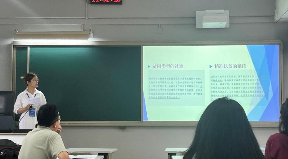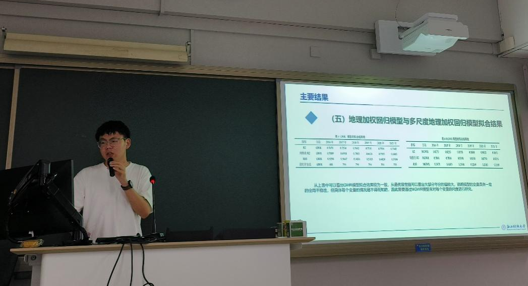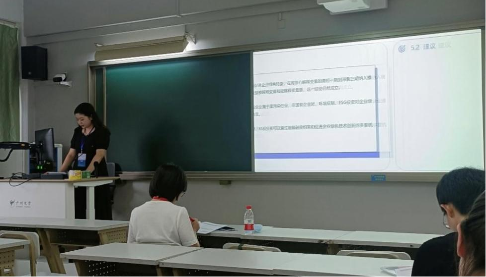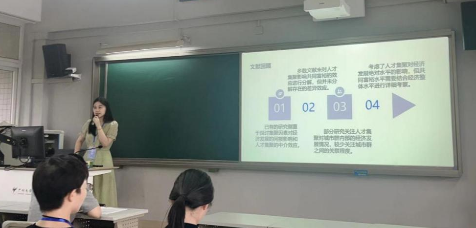 在本次论坛中,我院博士研究生朱学博作题为《中国混合贫困的测度与特征识别》主题报告,报告中引入分层贫困指数分析中国混合贫困状况,并利用随机森林算法对贫困特征进行了精准识别,为进一步消除相对贫困问题提出对策建议。李洋阔作题为《Statistical Analysis of Dynamic Networks with Application to Identify the Community of Respiratory Infections》主题报告,探讨了动态网络的统计分析及其在社区检测的应用。钱佳丽作题为《数字经济对新质生产力的影响研究:基于中介效应与门槛效应》主题报告,围绕数字经济对新质生产力的机制与效应进行了讨论。田婧茹作题为《人才集聚对城市群共同富裕的影响——基于国家级城市群的实证研究》主题报告,梳理了我国人才集聚对共同富裕的作用机制,以国家级城市群为例揭示城市群人才集聚对共同富裕产生的虹吸效应、扩散效应和净效应。高珊珊作题为《环境规制和ESG投资如何赋能企业绿色转型?》主题报告,通过实证分析揭示了环境规制和ESG投资对企业绿色转型的积极作用和作用机制,并据此提出了相应的对策建议。李羚锐作题为《数字技术创新的时空演进与多尺度影响因素研究——以长三角41个城市为例》主题报告,围绕长三角地区数字技术创新的发展趋势、空间格局以及在不同空间尺度上的影响因素进行了讨论。