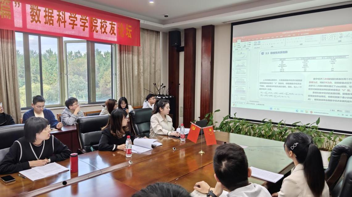 高珊珊作题为《省域数字经济对碳排放效率的驱动效应及路径研究——基于BP神经网络与空间计量分析》的学术报告。她运用空间马尔科夫链模型量化省际数字经济空间转移特征,结合BP神经网络模型提取关键影响因素,探究数字经济影响碳排放效率的作用路径。