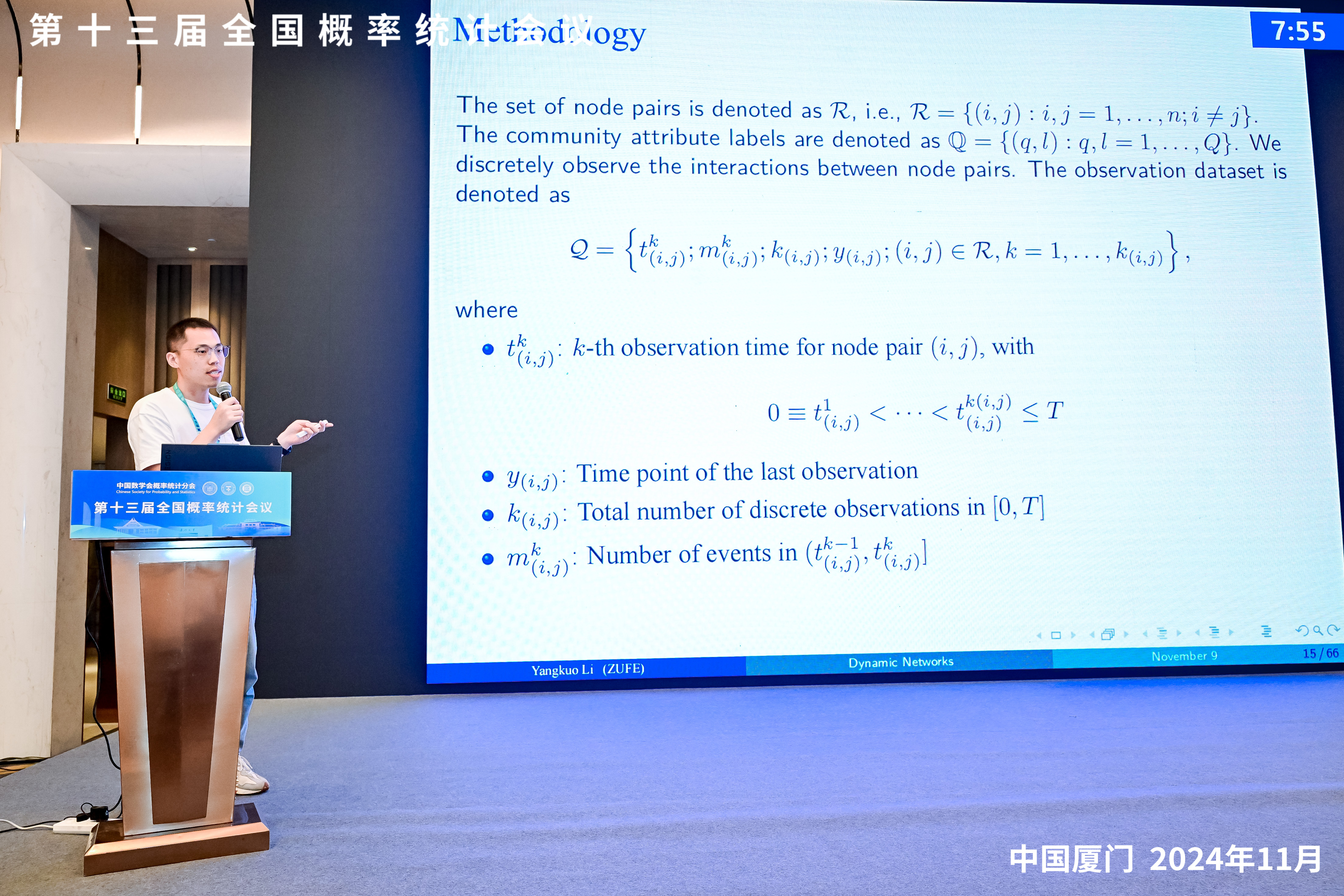 在此次会议中,我院博士研究生李洋阔作题为《Statistical and Computational Methods for Detecting Overlapping Communities in Dynamic Networks》的主题报告,主要介绍了动态网络的统计建模方法,探讨了该领域的最新研究方法与实际应用。