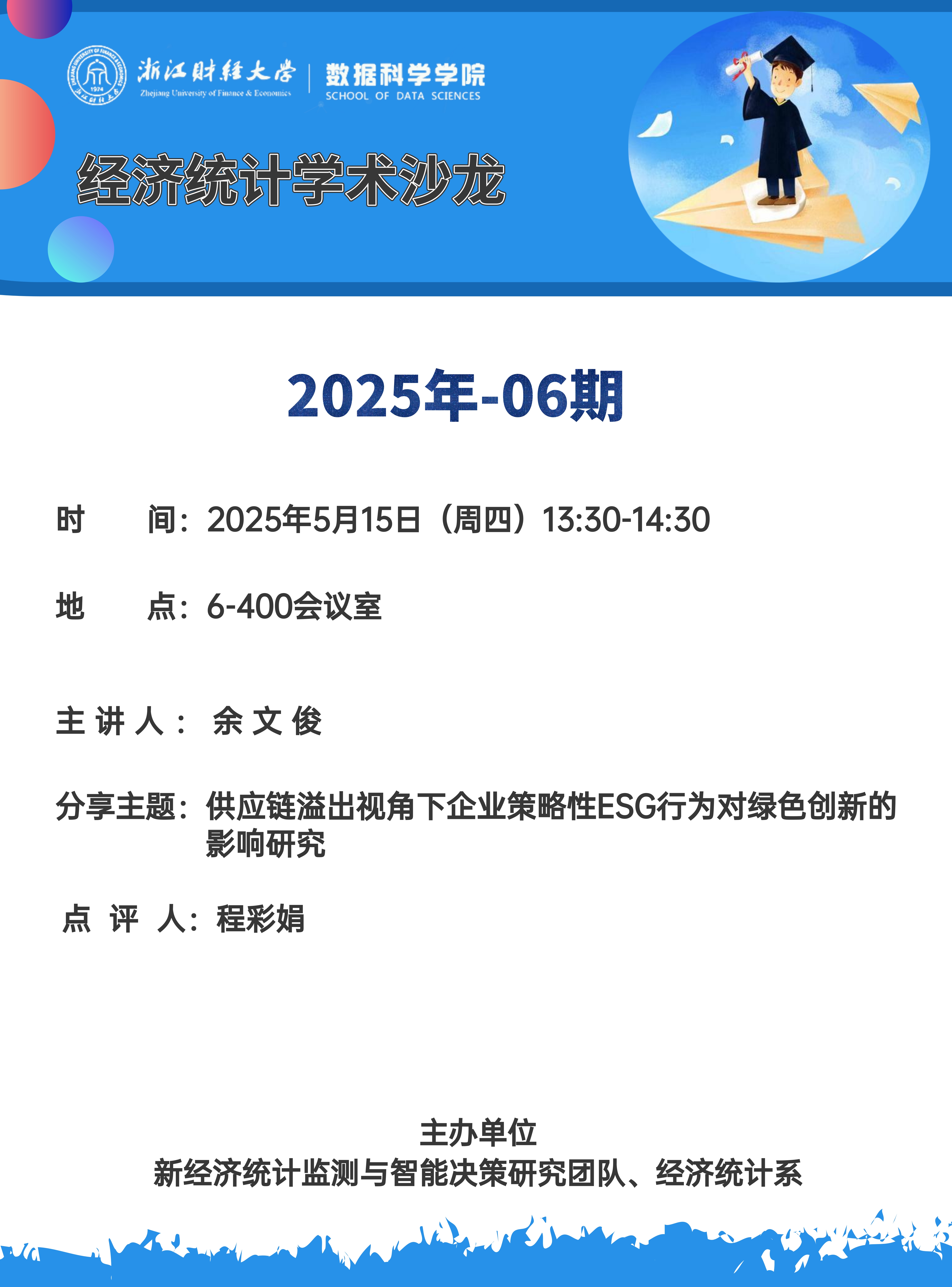 上一条:经济统计学术沙龙 2025年-07期 下一条:我院博士生成果入选全国工业统计学教学研究会青年统计学家协会年会暨第三届统计理论及其应用国际研讨会博士生论坛
